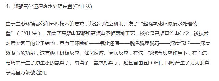 超強氧化還原廢水處理裝置(CYH法)處理各種有機廢水、各種重金屬廢水