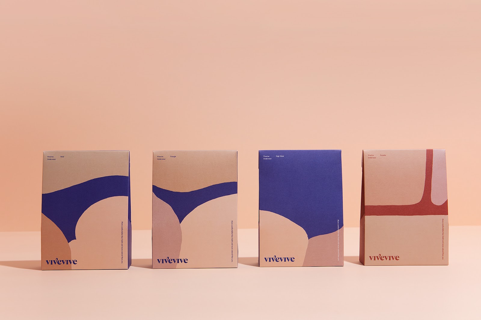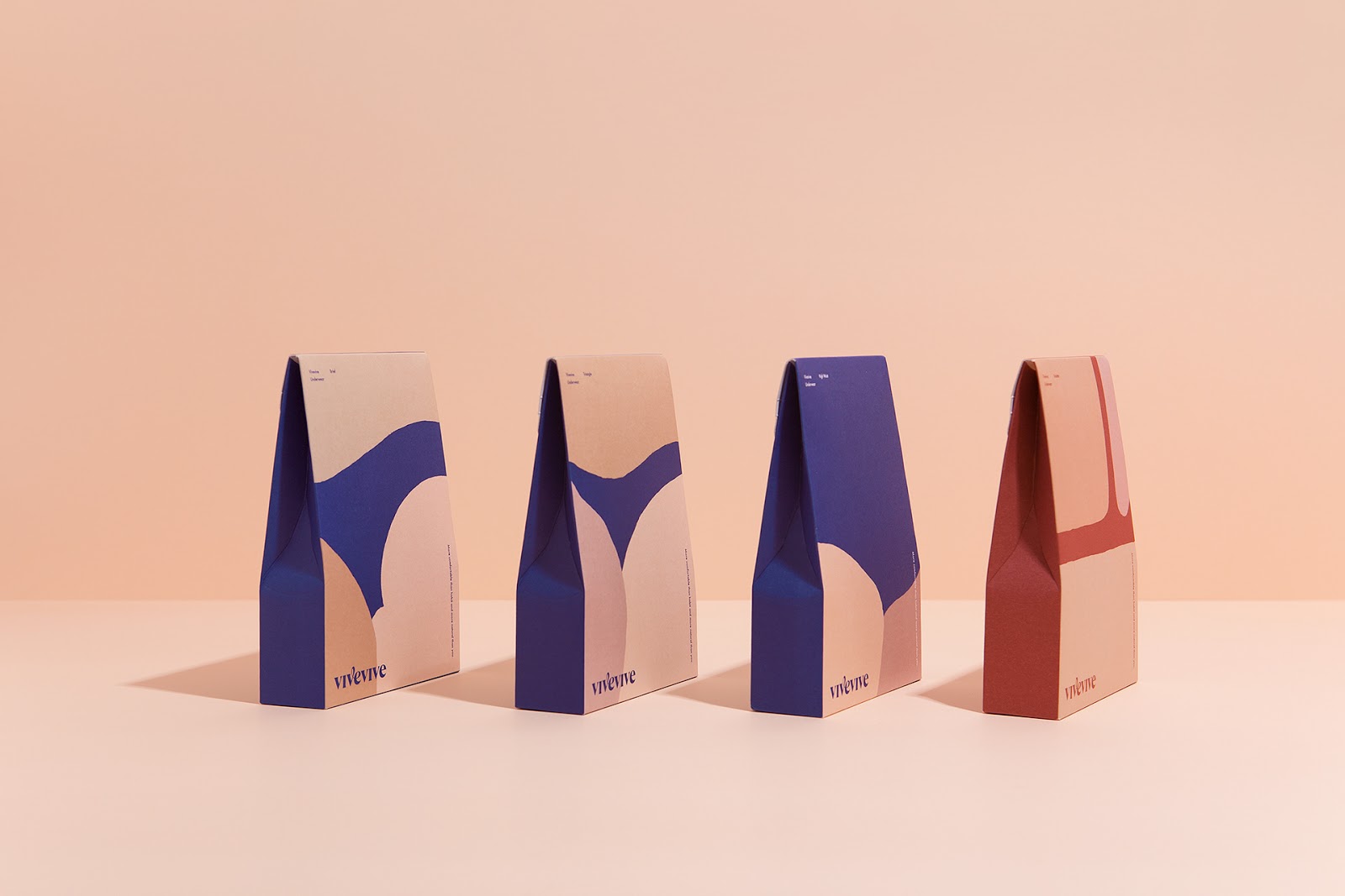 來自于韓國的CFC設計工作室為女性內衣品牌vivevive做的視覺識別和包裝設計。最自然的身體是美的,CFC用抽象的手法描繪了女性美麗的身體曲線,也用此詮釋著身體最舒適的狀態(tài)。通過對比的大面積色塊拼接來描繪身體局部,很好地抓住了女性身體曲線的特征。又用了膚色的暗淺來描繪局部的光線變化。雖然非常抽象,但能引人聯(lián)想,識別度很高。