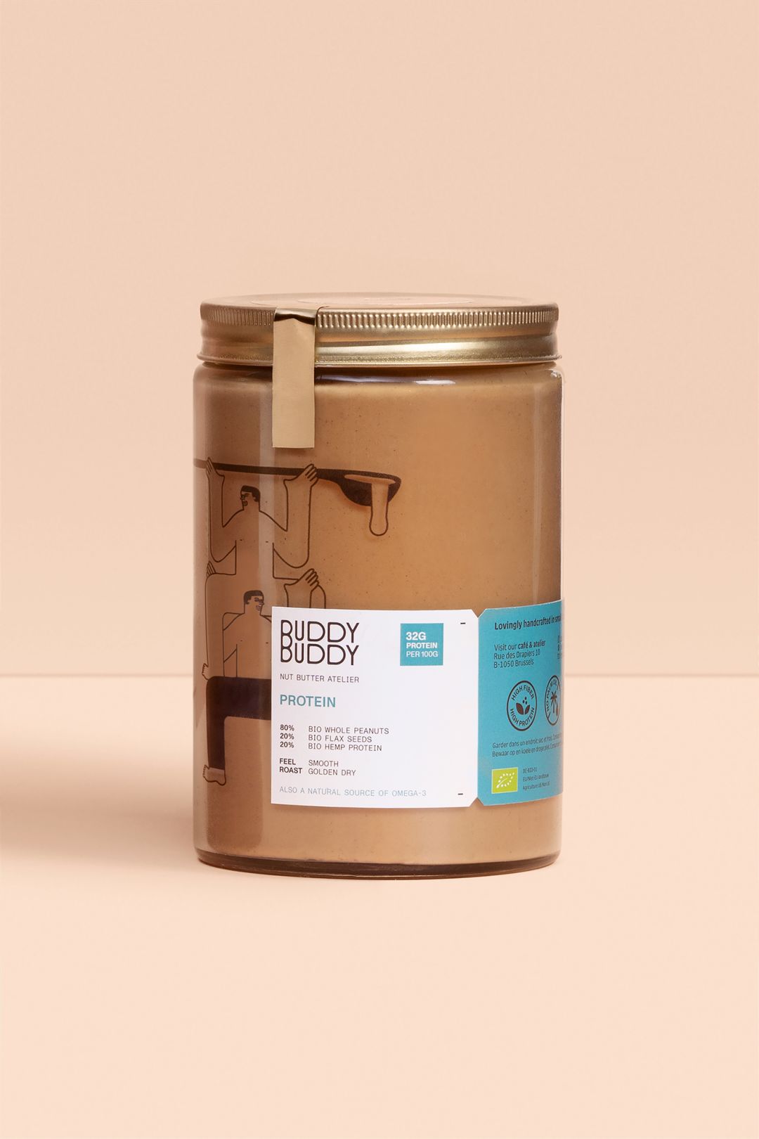 Buddy Buddy是一個位于比利時的食品品牌,他們的產品以堅果醬為主,還有啤酒和牛奶。品牌文字用的兩個B重疊組成,這個概念是向你能擁有的最好的伙伴致敬,通過重復的插畫圖案和標志字體表現,同時也展現出Buddy Buddy美味食品分享的不同時刻,充滿幽默感和青春氣息。