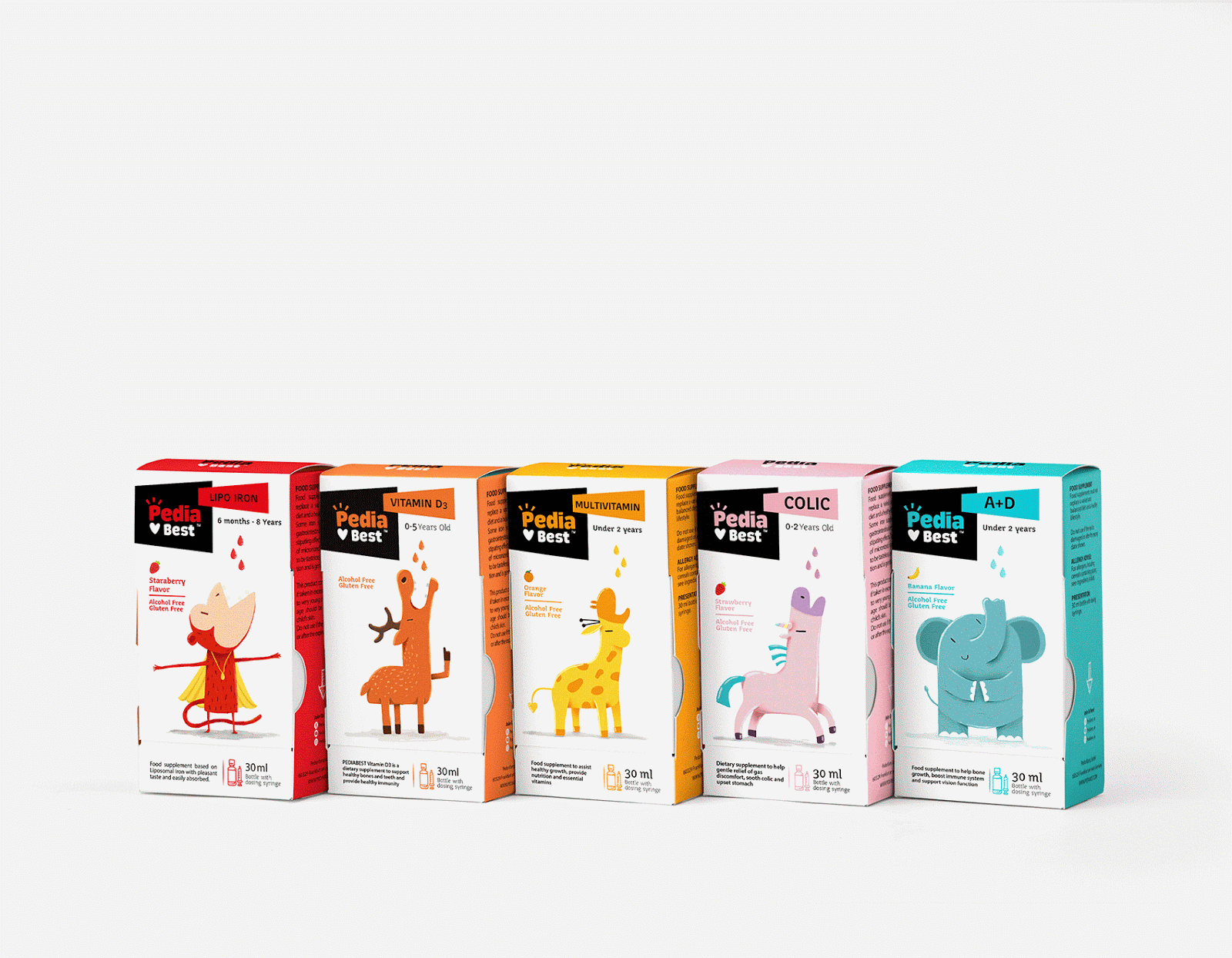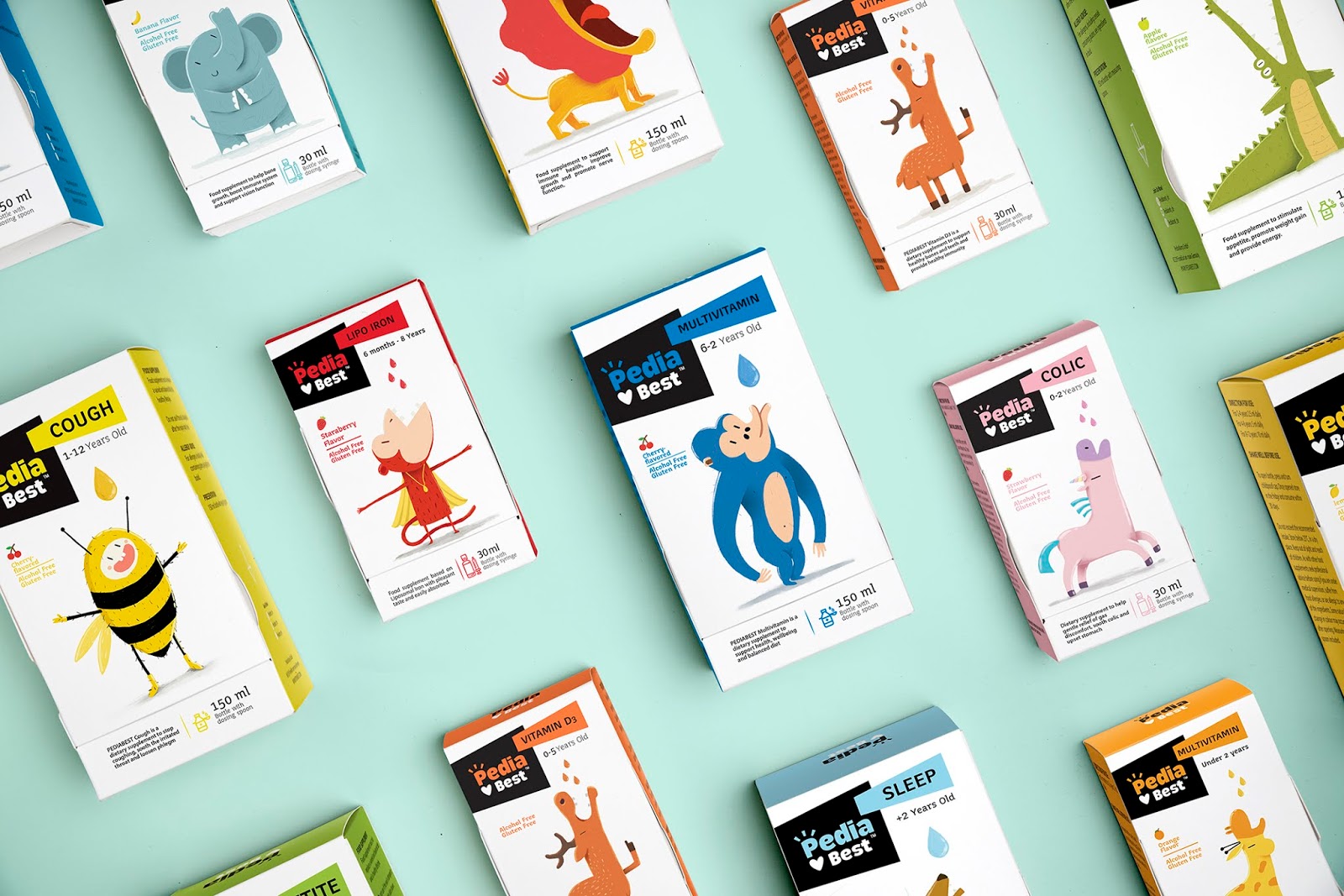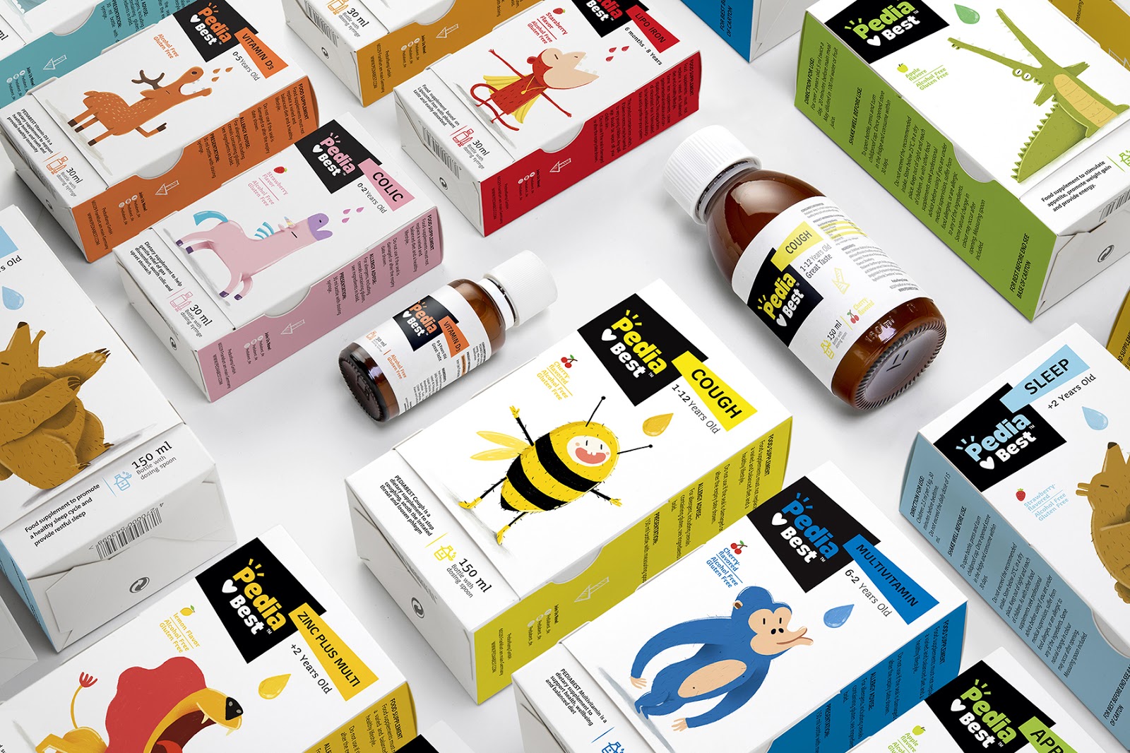 給嬰幼兒喂藥絕對是媽媽們頭疼的一件事情,通常的方法一般是:讓我看看你的牙齒,張開你的嘴!飛機要來了!,但是往往并不奏效。DEEEZ.CO設計的包裝盒可以講故事,根據每款產品的適應癥,動物們急切地張著嘴要喝糖水。包裝講述有趣的故事。使孩子產生一種渴望和好奇的感覺,并在服藥時使他們愉悅。