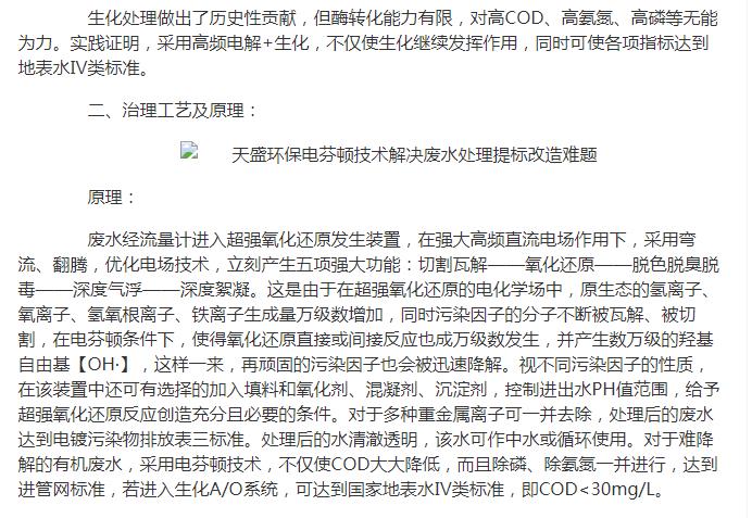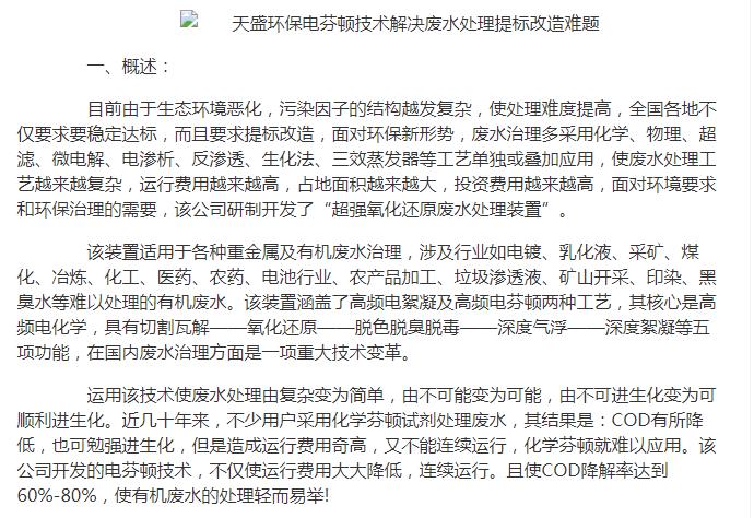 亞洲在線刊登:天盛環(huán)保電芬頓技術(shù)解決廢水處理提標(biāo)改造難題